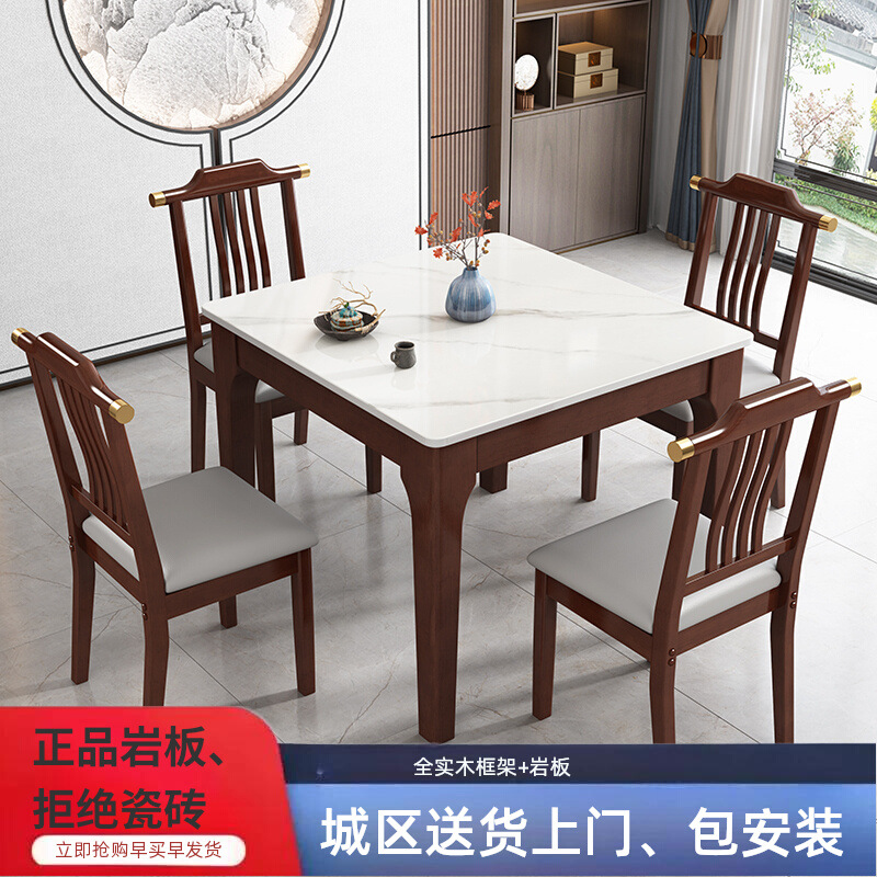 Meja Persegi Papan Batu Kayu Solid Sederhana Meja Makan Apartemen Kecil Meja Kasual Gaya Tiongkok Meja Makan Restoran Rumah Tangga Persegi