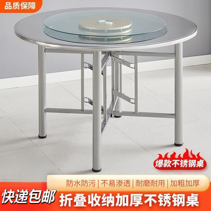 Meja Bundar Stainless Steel Ekstra Tebal Meja Makan Ekstra Tebal Rumahan 10 Orang Meja Makan Hotel Meja Lipat Sederhana
