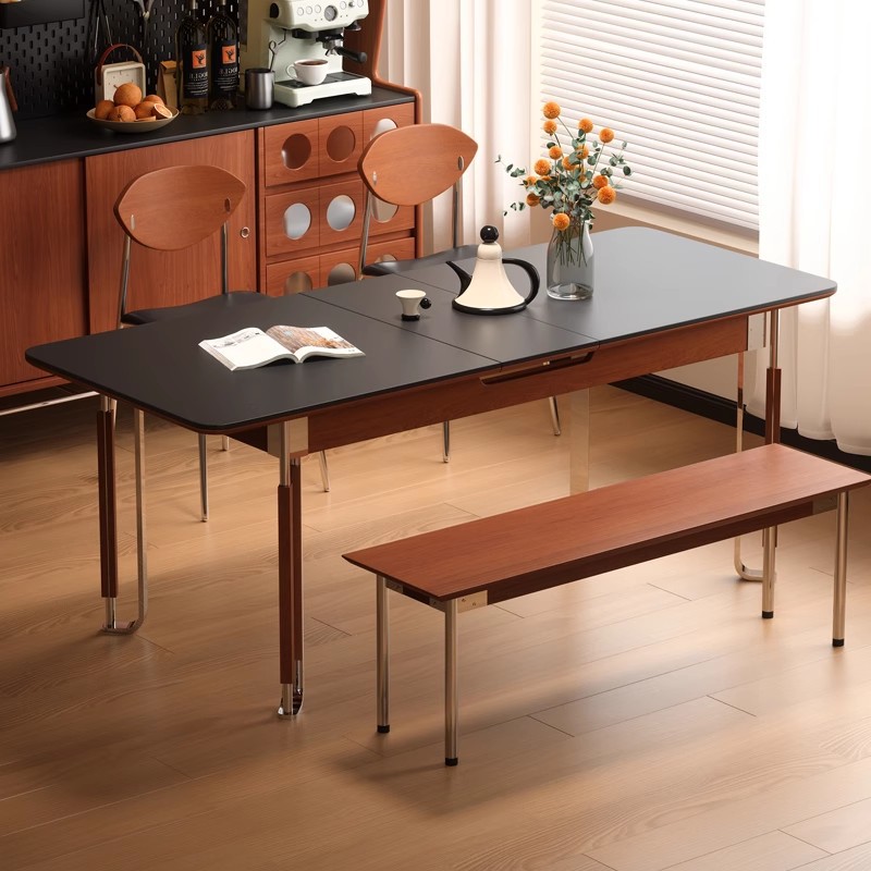 Meja Makan Papan Batu Kayu Solid Teleskopik Persegi Panjang Retro Prancis Meja Rumah Tangga Tipe Kecil Modern Sederhana Gaya Mid-antik