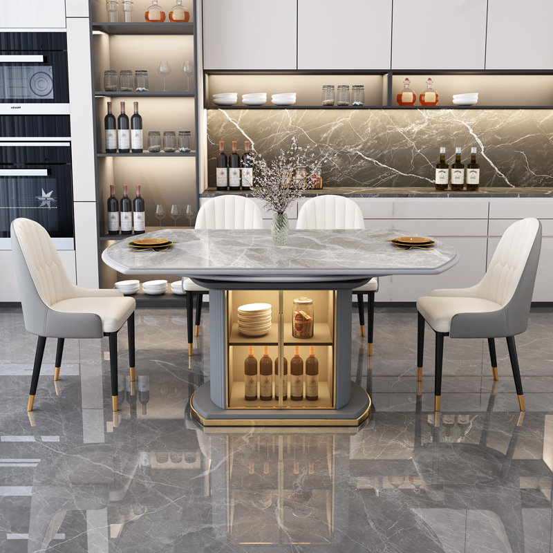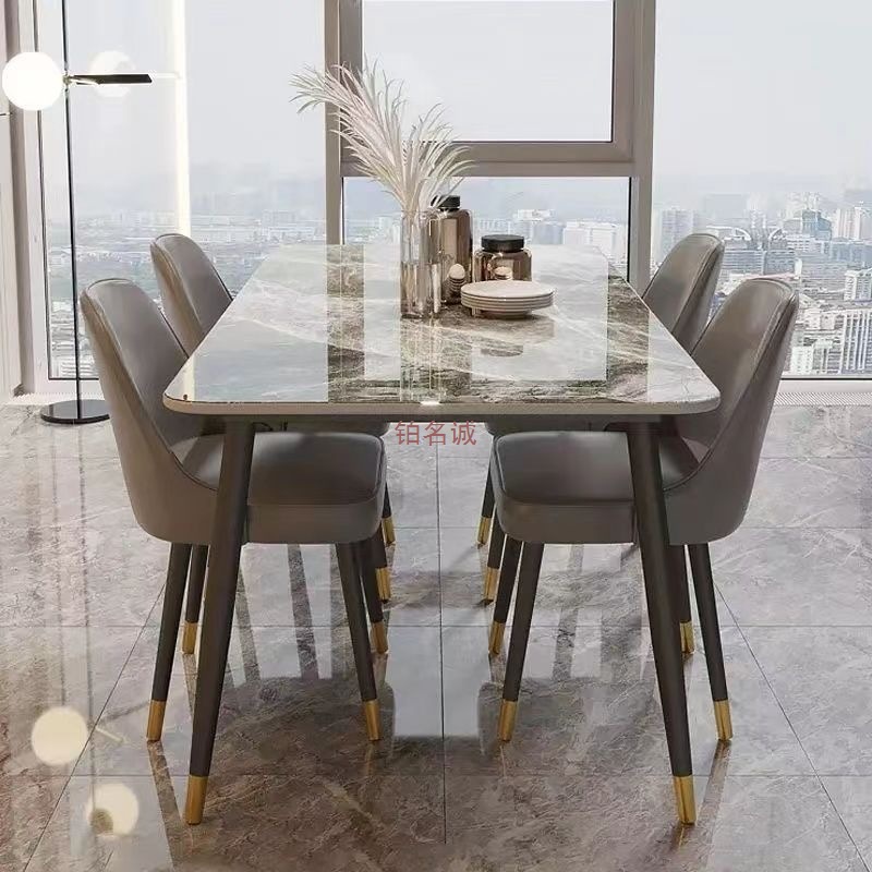 Meja Makan dan Kursi Papan Batu Mewah Ringan Modern Gaya Italia Kombinasi Meja Makan Sederhana Meja Makan Rumah Tangga Meja Panjang Kursi Kecil