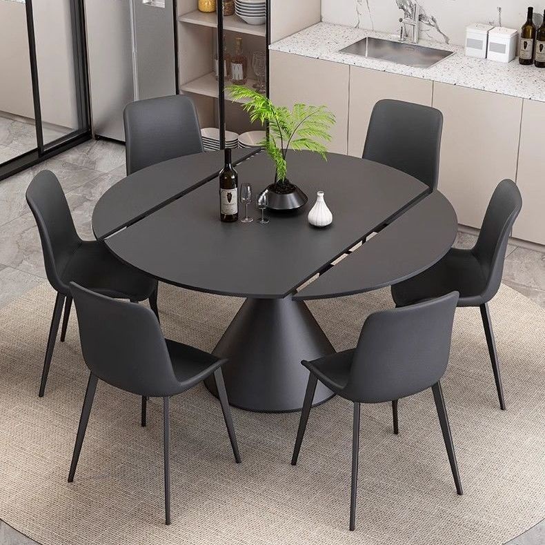 Meja Makan Papan Batu Sederhana Warna Hitam Meja Makan Rumah Tangga Modern Sederhana dan Dapat Diputar Persegi Teleskopik Mewah Ringan Gaya Italia