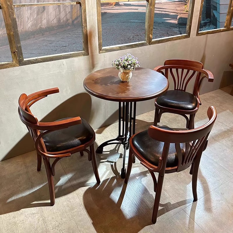 Kombinasi Meja dan Kursi Kafe Kayu Solid Retro Gaya Amerika