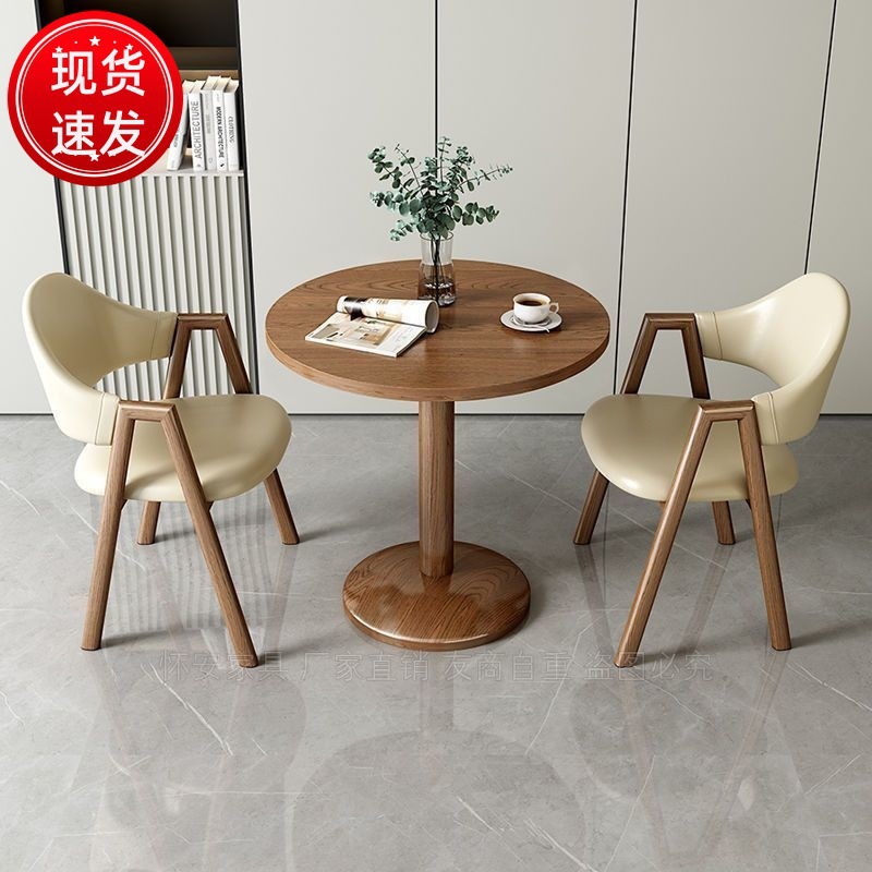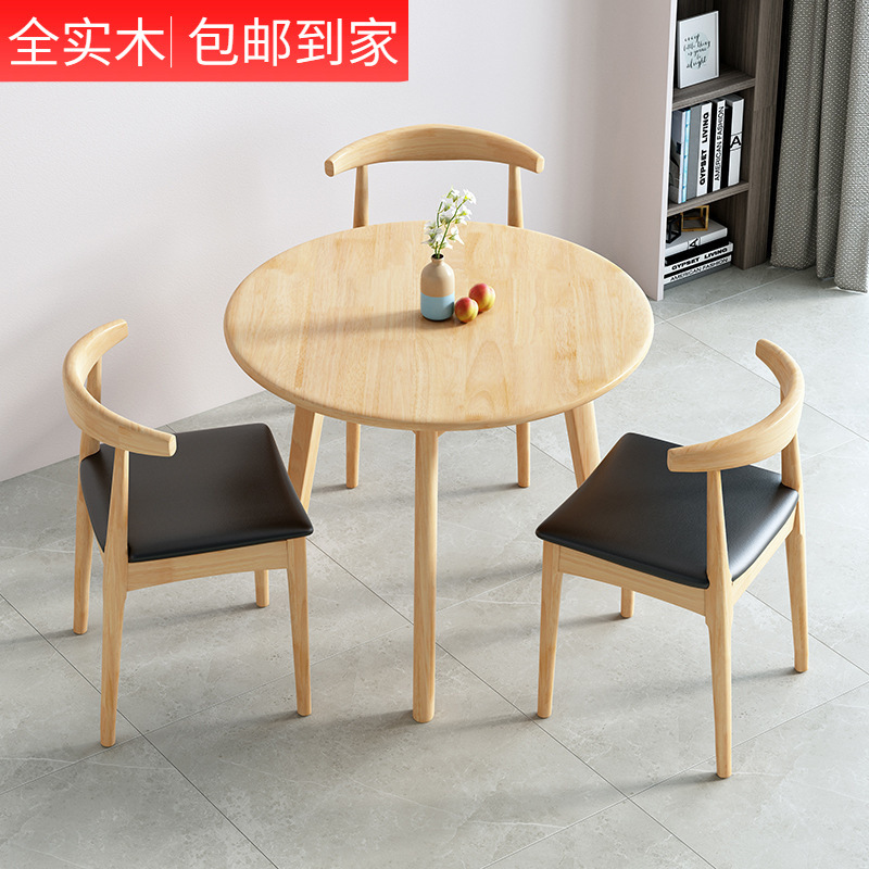Meja Bundar Kayu Solid Nordik Gaya Jepang Kayu Asli Sederhana Modern Buku Meja Makan Kursi Kombinasi Meja Bundar Kopi