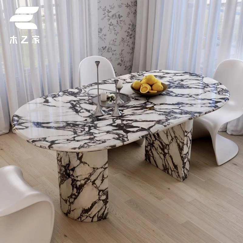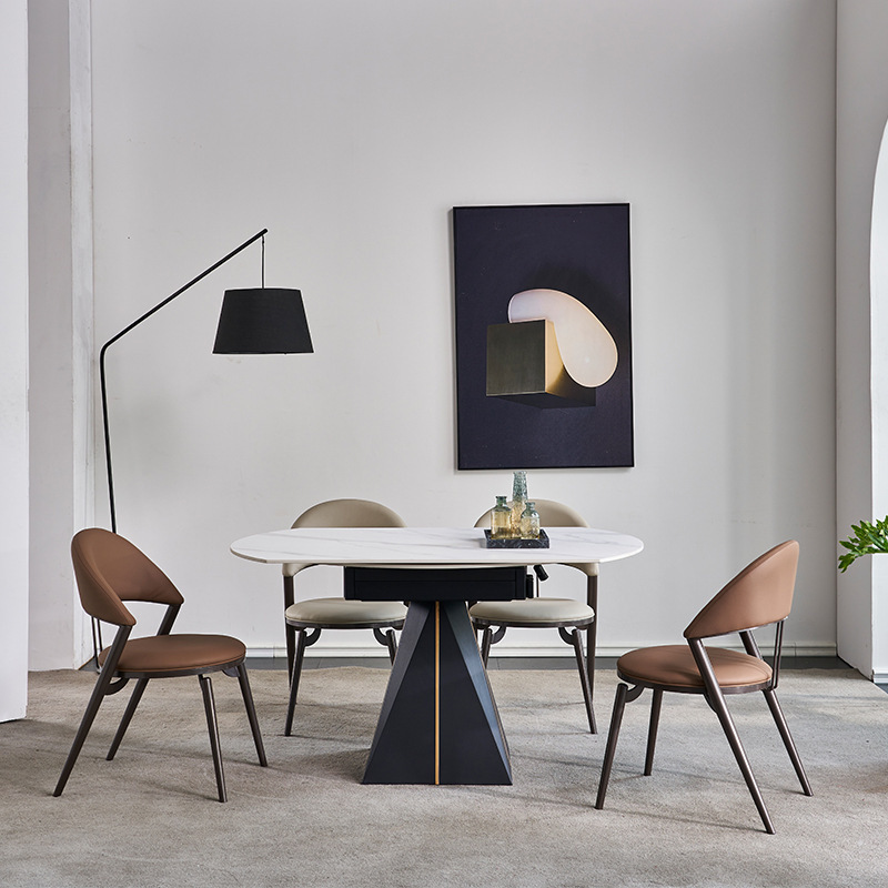 Meja Makan UFO Marmer Mewah Gaya Italia Meja Makan Oval Rumah Tangga Villa Meja Makan Desainer Sederhana Meja Makan dan Kursi Makan Superior