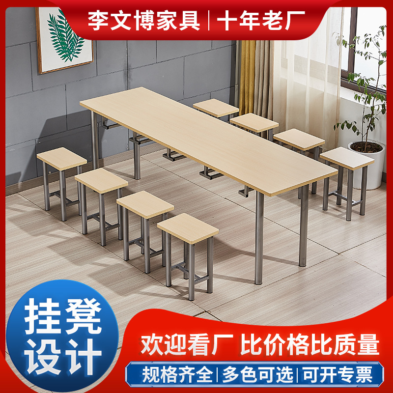 Meja dan kursi makan kantin staf, sekolah, perusahaan, restoran, ruang makan pabrik, meja dan kursi makan terintegrasi stainless steel untuk 4 orang, 6 orang, 8 orang.