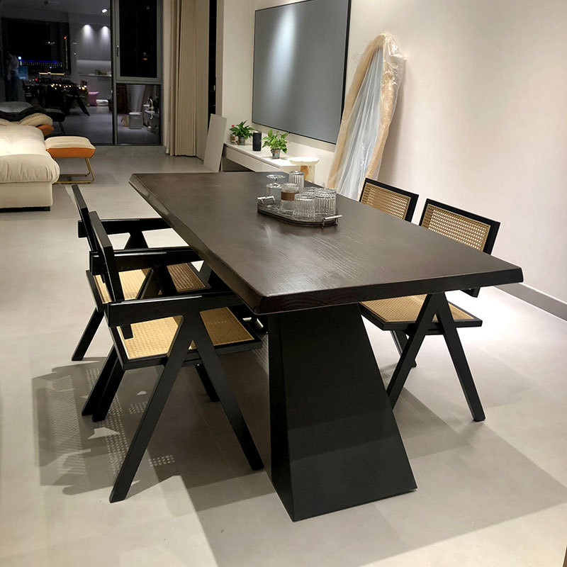 Meja makan dan kursi minimalis Italia, kayu solid kombinasi rumah rekreasi meja nasi panjang desainer log elegan Internet meja selebriti