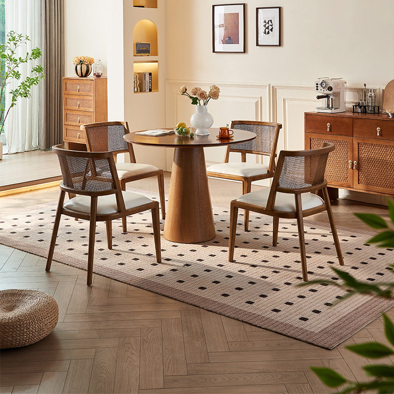 Meja Makan Kayu Solid Rotan Gaya Tiongkok Baru Modern Sederhana Gaya Tenang Restoran Hotel Tas Lembut Sandaran Kursi Rotan Kombinasi Meja Bundar