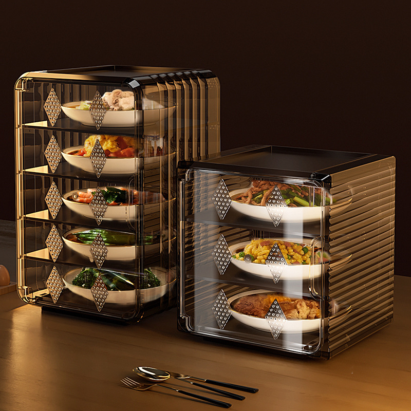 Kotak makan dapur anti nyamuk, penutup meja makan dapur, nyaman, plastik transparan, multi lapisan, anti selip, anti debu, kotak penyimpanan lalat, musim panas