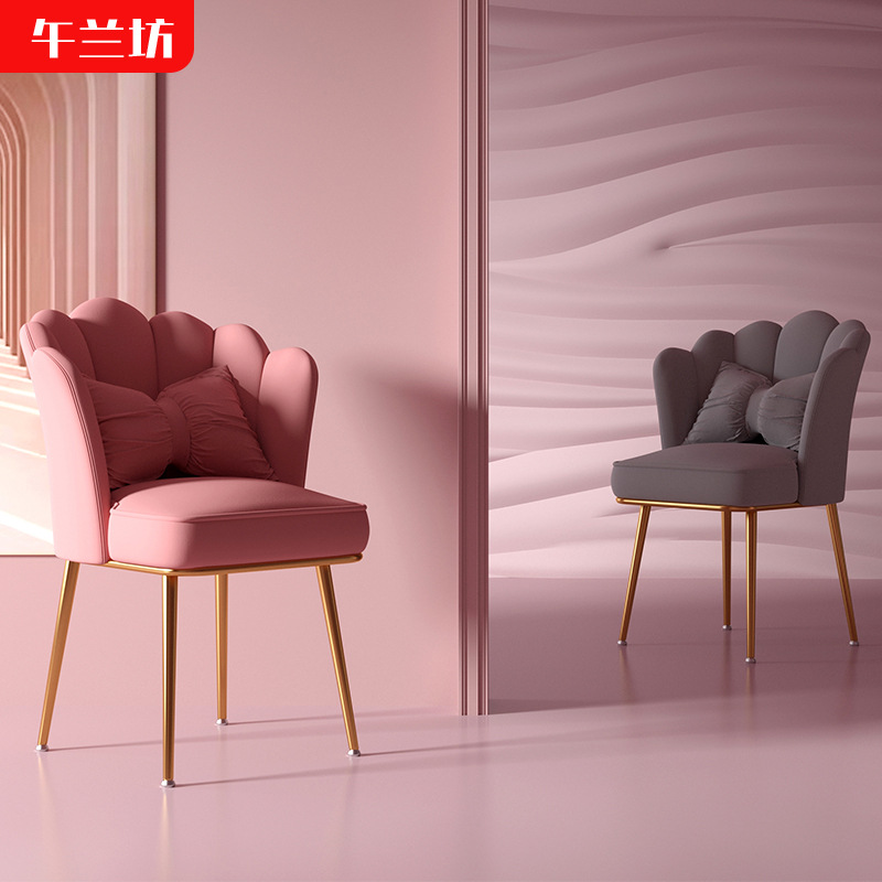 Bangku makeup kuku selebriti Internet, kursi makan rumah gaya ins, kursi jaring kelopak merah gadis lucu, kursi sandaran kamar tidur