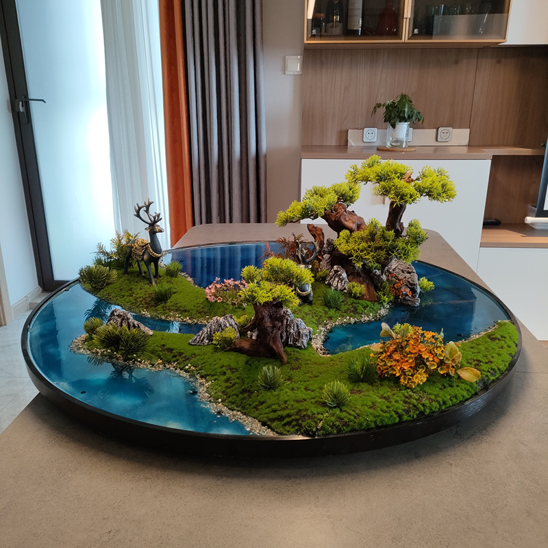 圆桌餐桌摆花微缩景观电动转盘盆景酒店装饰品餐桌中间摆件高端花