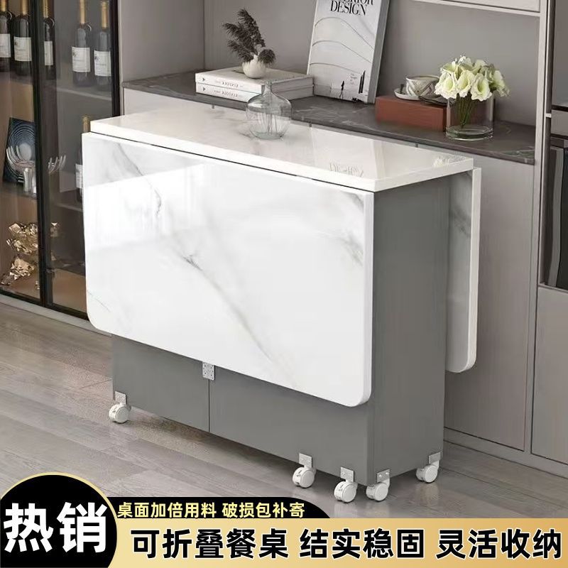 家用折叠桌可移动带轮长方形小户型超薄多功能餐厅宿舍吃饭小桌子