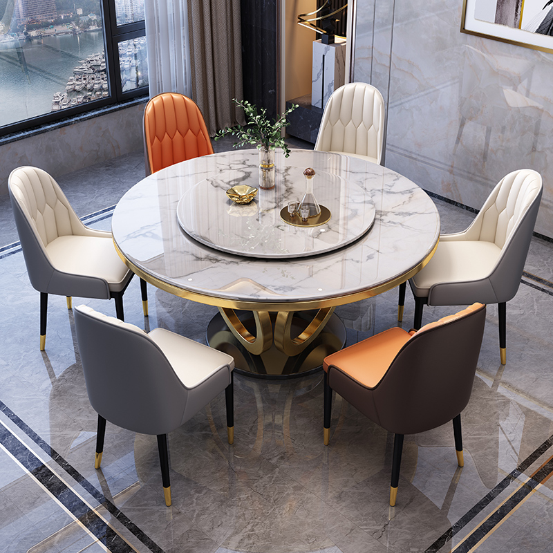 Kombinasi Meja Makan dan Kursi Kemewahan Ringan Marmer Rumah Meja Bundar Sederhana Modern Restoran Rumah Tangga dengan Meja Berputar