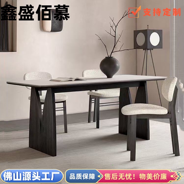 Meja Makan Retro Prancis Restoran Meja Makan Papan Batu Matte Putih Murni Persegi Panjang Tipe Rumah Tangga Kecil Meja Makan Batu Kayu Solid Hitam