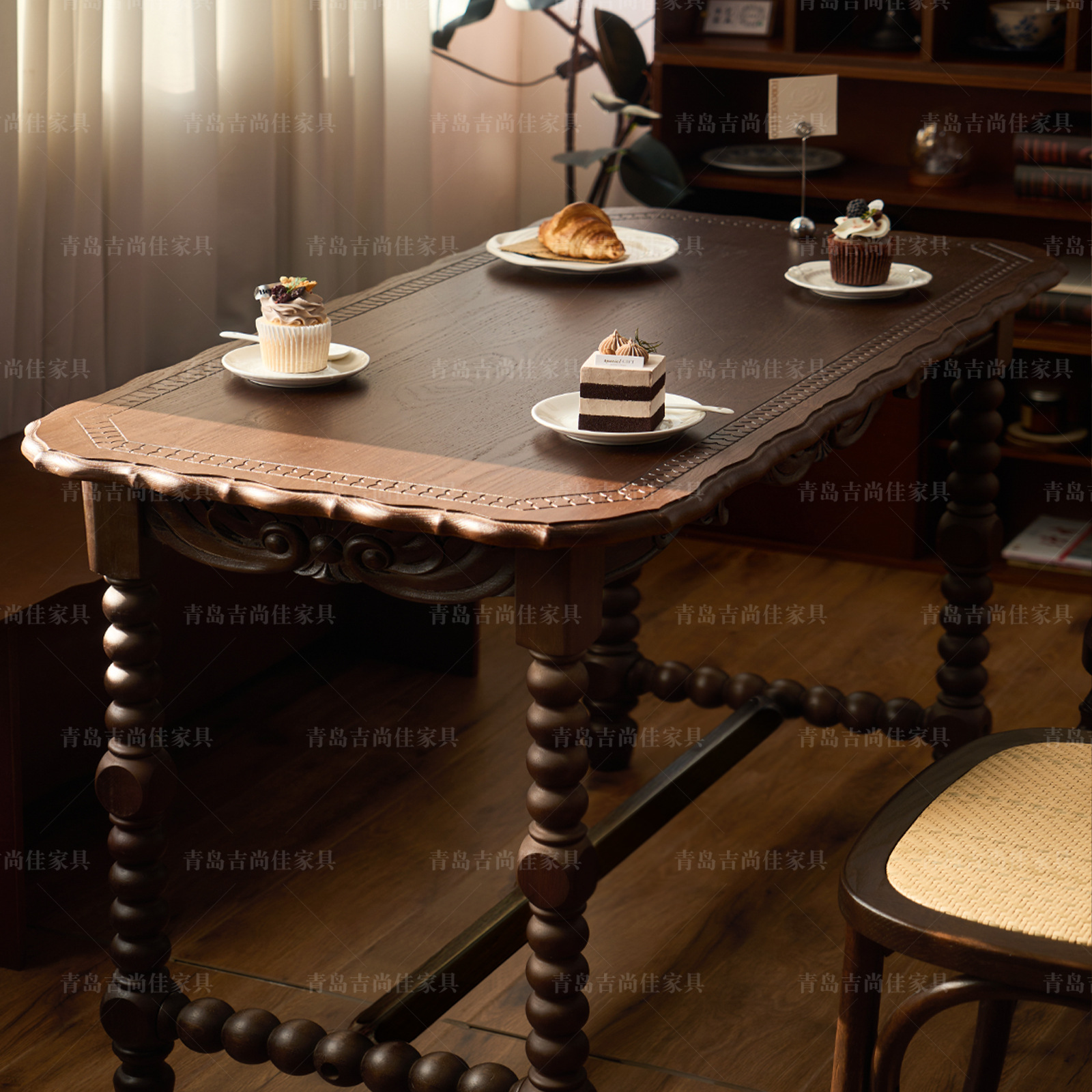 Meja Persegi Kayu Solid Retro Gaya Prancis Meja Kopi Perabot Perabot Abad Pertengahan Toko Makanan Penutup Sederhana Gaya Amerika Loft Meja Restoran dan Kursi