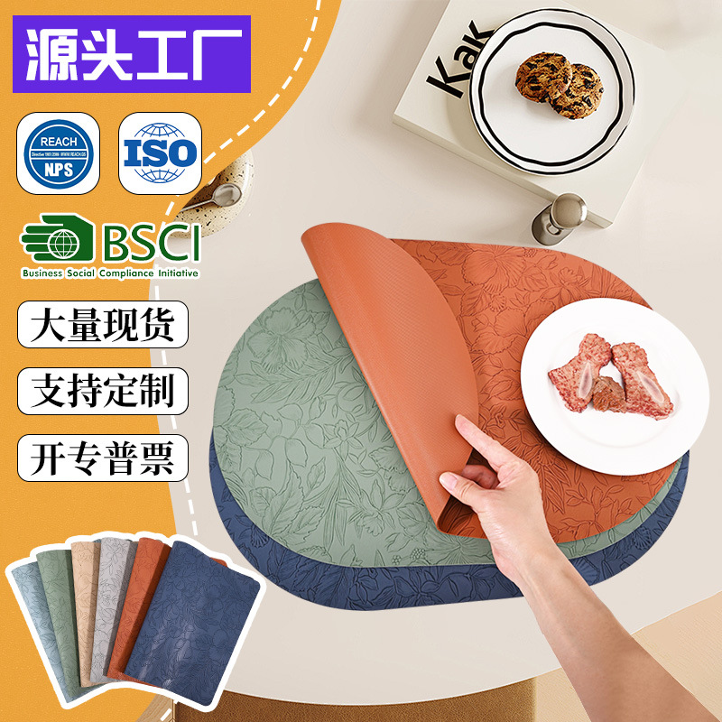 椭圆皮革餐垫酒店餐厅防水防油花卉隔热垫餐轻奢桌垫高级感西餐垫