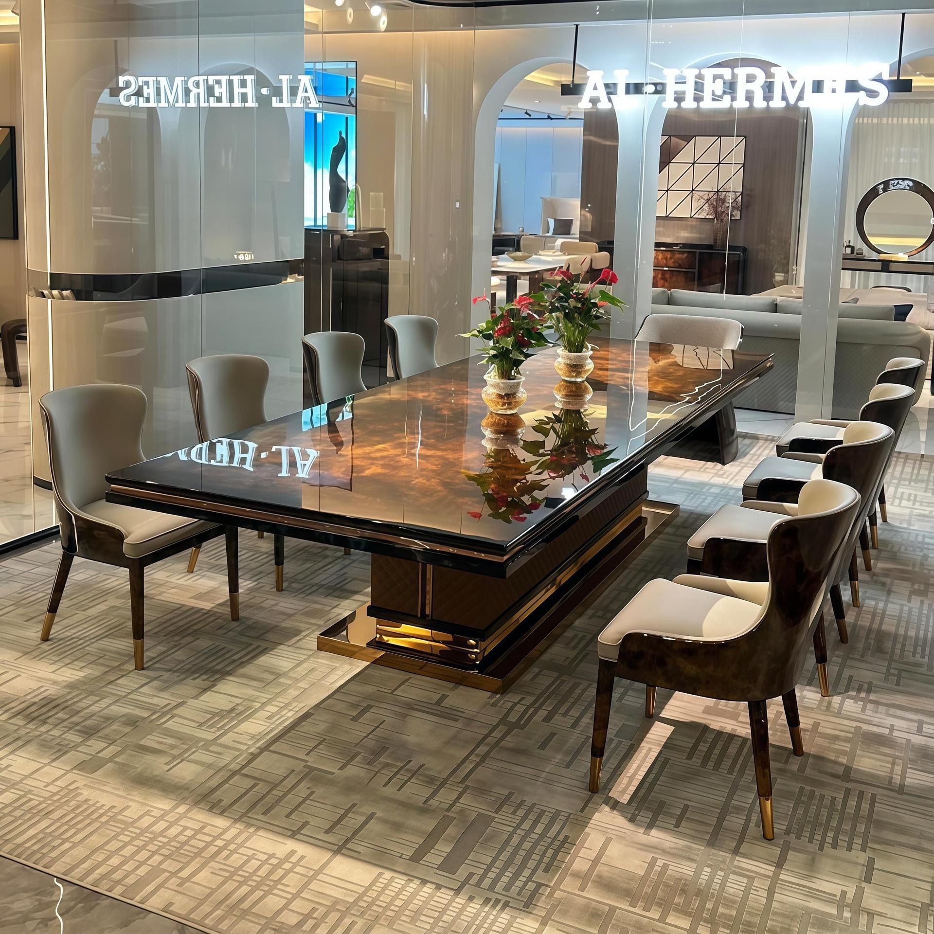 Meja Makan Sederhana Persegi Panjang Vila Persegi Panjang, Meja Makan Sederhana Persegi Panjang, Kombinasi Meja Makan dan Kursi Modern Gaya Italia