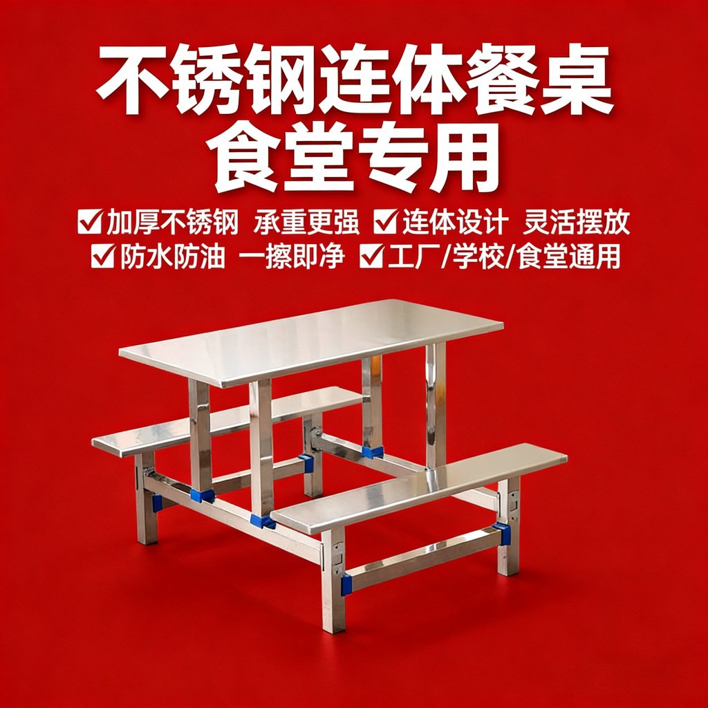 Sekolah kantin stainless steel meja makan pabrik karyawan meja makan siam meja makan dan kursi kombinasi 4 orang 6 orang 8 orang meja makan dan kursi