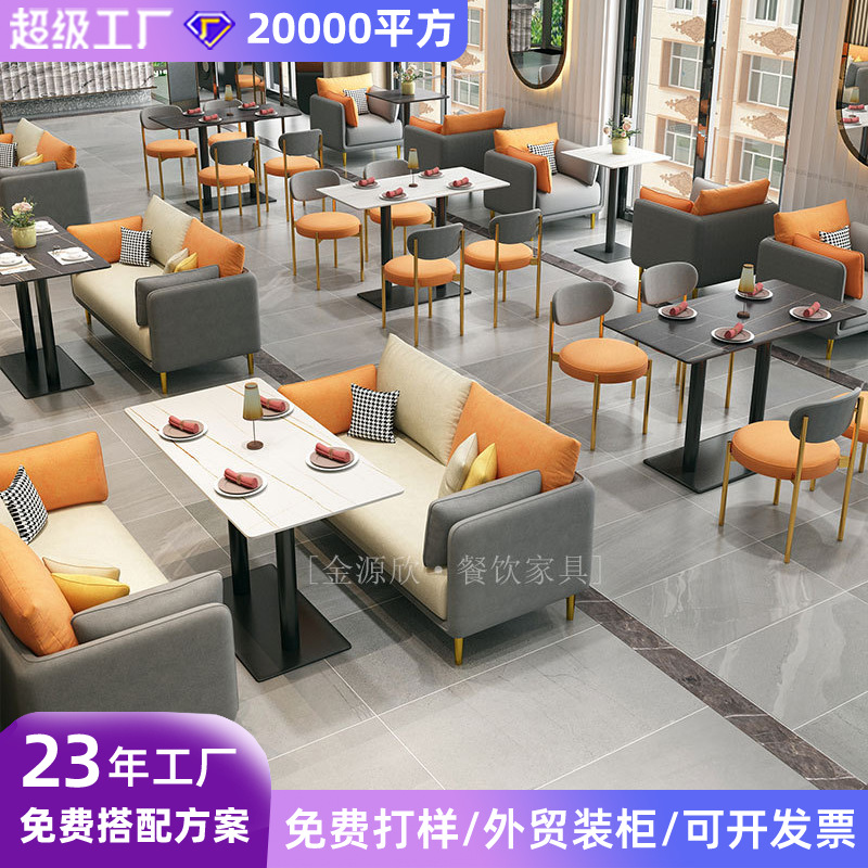Meja dan kursi kedai teh susu sederhana grosir, booth dinding restoran barat, sofa, set meja dan kursi besi tempa kedai kopi mewah ringan