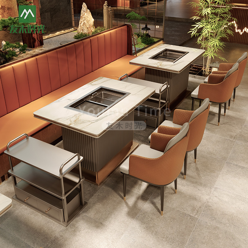 Meja dan kursi restoran hot pot bergaya mewah, kursi makan restoran, bilik restoran masakan Hunan, bilik kedai teh, sofa bilik restoran barbeque swalayan.