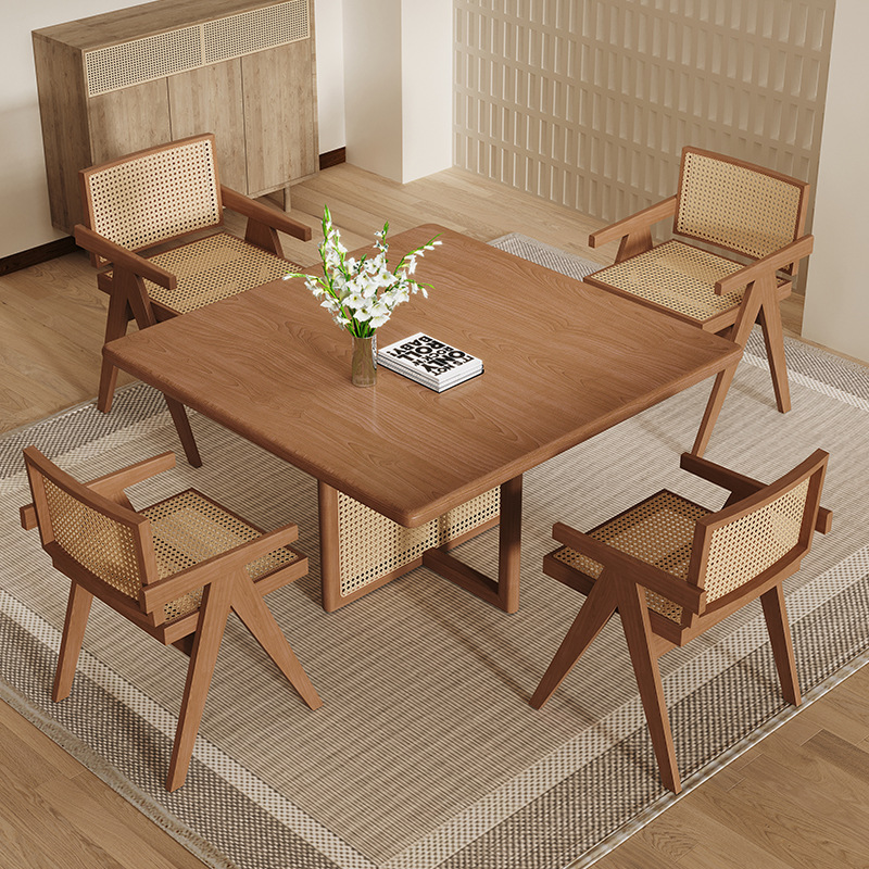 Meja Makan dan Kursi Restoran Bar Kayu Solid Gaya Jiji Meja Persegi untuk Negosiasi Meja Catur dan Kartu Meja Meja Teh Persegi Kecil