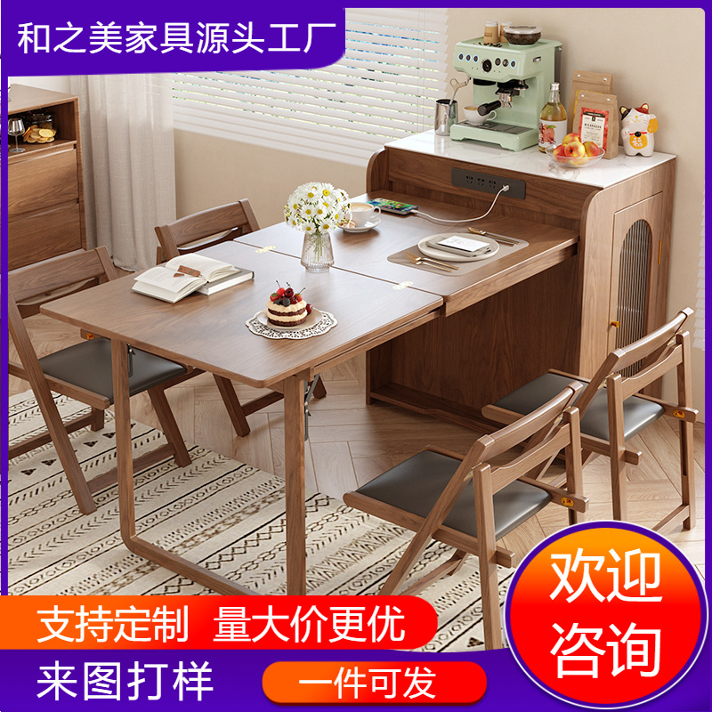 Meja makan kayu keras gaya Jepang, meja makan Pulau Satu buah rumah tangga, apartemen kecil, piring batu, meja makan multifungsi lipat