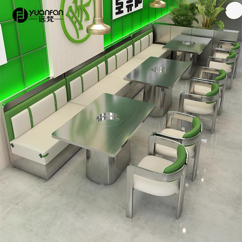 Gaya Industri Restoran Bertema Stainless Steel Kursi Kartu Sofa Barbekyu Barbekyu Self-Service String Toko Kombinasi Meja dan Kursi Panci Panas
