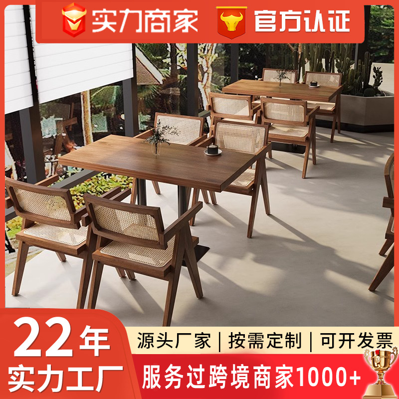 Meja dan Kursi Kafe Selebriti Internet Kombinasi Meja dan Kursi Restoran Rotan Kayu Solid Retro Meja dan Kursi Santai Toko Teh Susu Selebriti Internet