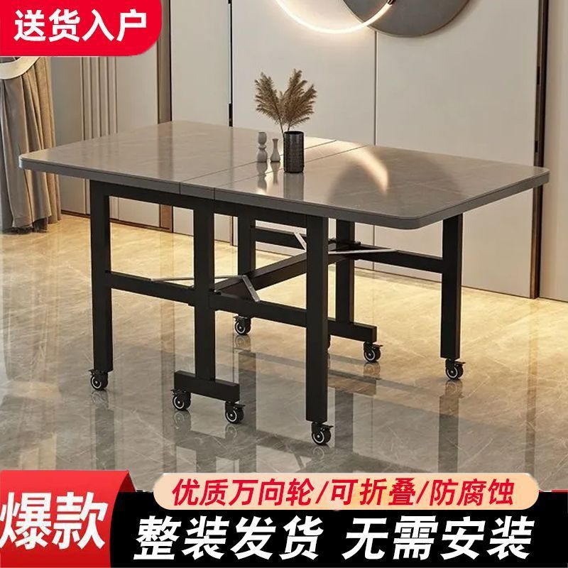 折叠餐桌岩板超薄家用小户型免安装简易饭桌可伸缩移动多功能餐桌