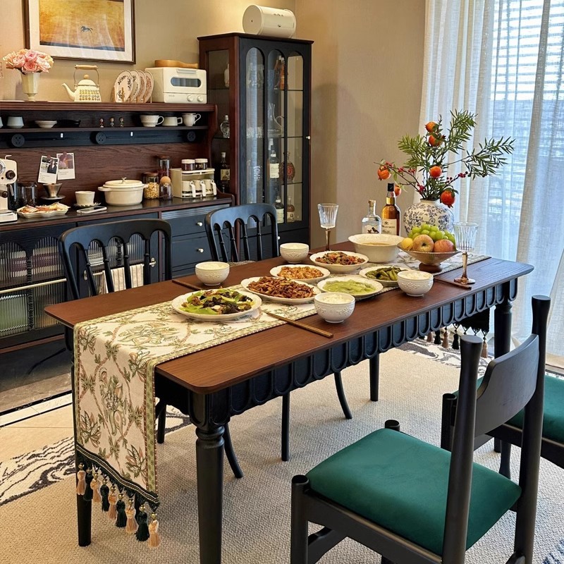 Meja Makan Retro Kayu Solid Prancis Meja Papan Warna Hitam Meja Panjang Bisa Dilipat Gaya Amerika Tipe Kecil Oval Rumah Tangga Meja Makan Abad Pertengahan
