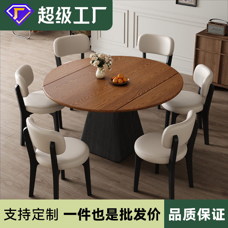 Meja makan kayu Solid dan kombinasi kursi modern sederhana dapat ditarik lipat meja makan bulat meja makan apartemen kecil furnitur meja makan Barat