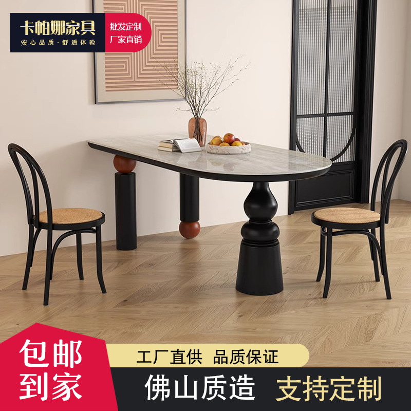Meja Makan Kayu Solid Retro Prancis Meja Makan Papan Batu Batu Batu Perancang Meja Makan Pulau Setengah Bulat Gaya Krim Abad Pertengahan