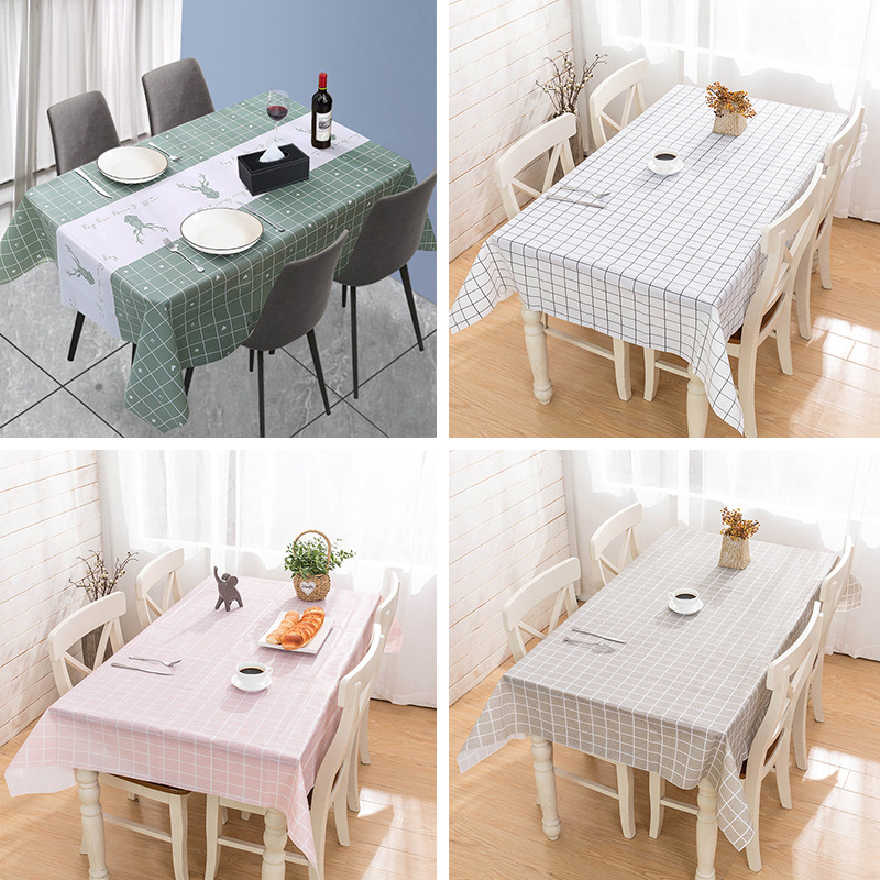 Taplak meja kotak-kotak gaya ins, taplak meja PEVA tahan minyak sekali pakai tahan air selebriti Internet sederhana