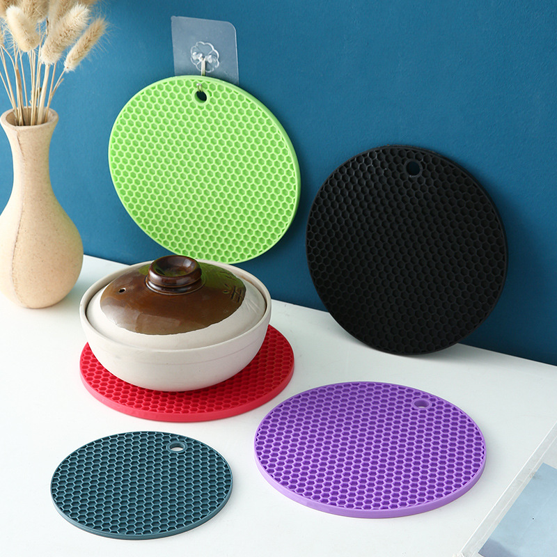 Alas meja rumah tangga tatakan insulasi silikon sarang madu bulat alas piring coaster dapur peralatan makan mangkuk panci pasir grosir