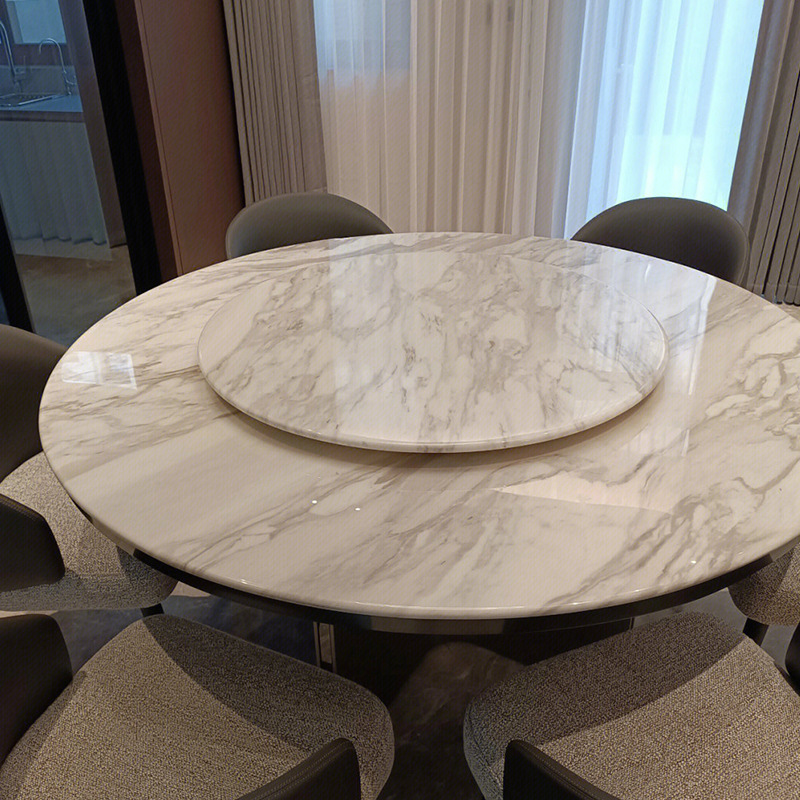 Impor Gaya Italia Ringan Jazz Putih Marmer Alami Meja Makan Bundar Desain Modern Sederhana Batu Mewah Kursi Meja Bundar