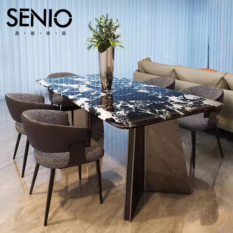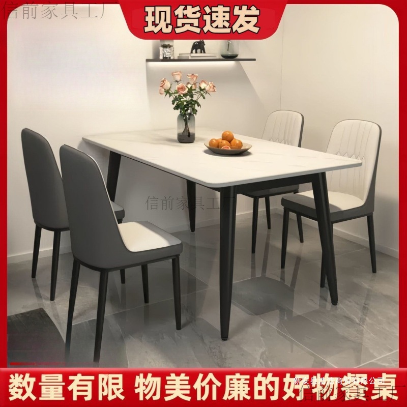 Rock plate meja makan rumah apartemen kecil, ruang tamu meja makan gaya Italia, meja makan ringan mewah persegi panjang modern sederhana kombinasi kursi