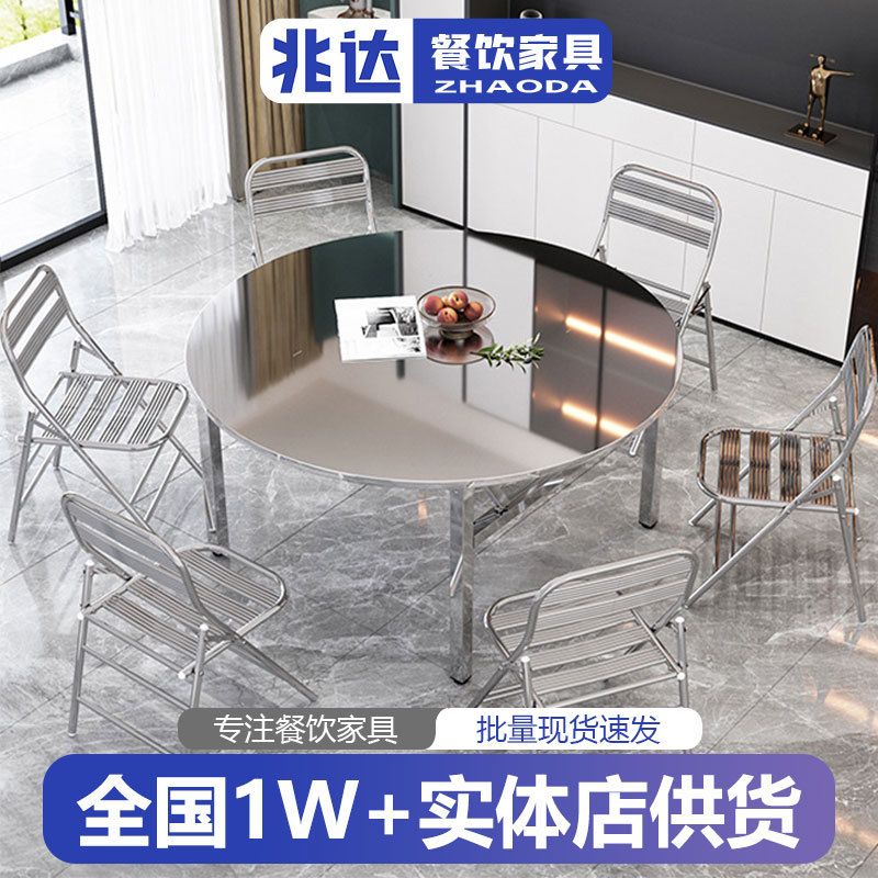 Meja Makan dan Kursi Lipat Stainless Steel Rumah Tangga Modern Luar Ruangan Nyaman Warung Makan Hot Pot Restoran Meja Bundar dengan Meja Berputar Multifungsi