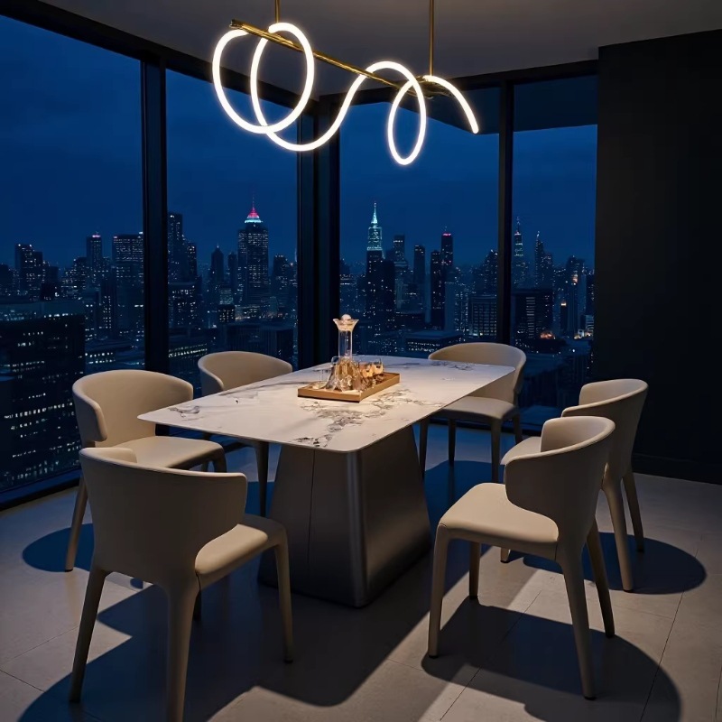Piring batu Nordic mewah, meja makan dan kursi kombinasi rumah tangga, apartemen kecil, persegi panjang, baja antikarat, meja makan restoran