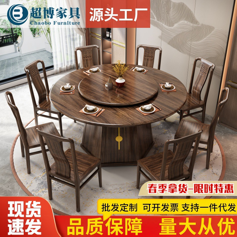 Kombinasi Meja Makan Kayu Kayu Wujin Gaya Tiongkok Baru Meja Makan Rumah Tangga 1 m 8 Meja Bundar Besar Hotel Kelas Atas