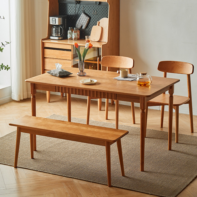 Meja makan persegi panjang, Nordic kayu padat meja makan dan kursi kecil apartemen rumah kayu Sakura meja makan laci modern Jepang