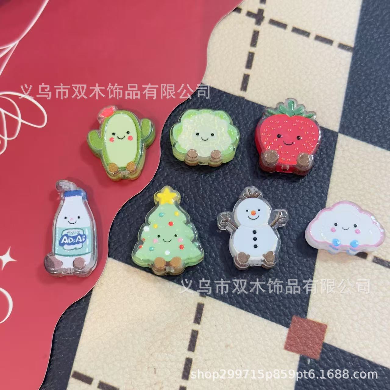 滴油浮雕可爱水果蔬菜小树雪人板材珠 diy手机链头绳包挂车挂配件