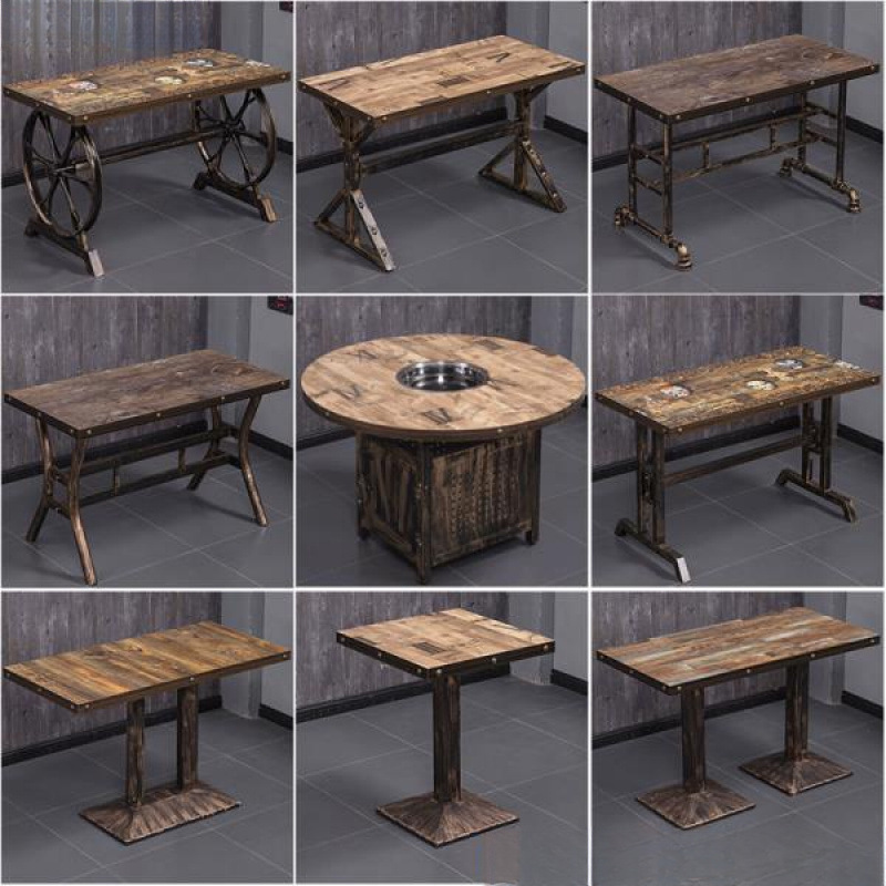 Restoran Bar Makanan Kecil Gaya Industri Meja Meja Kayu Solid Kursi Kombinasi Kafe Makanan Penutup Kue Restoran Bistro Selebriti Internet Meja Makan Gaya Amerika