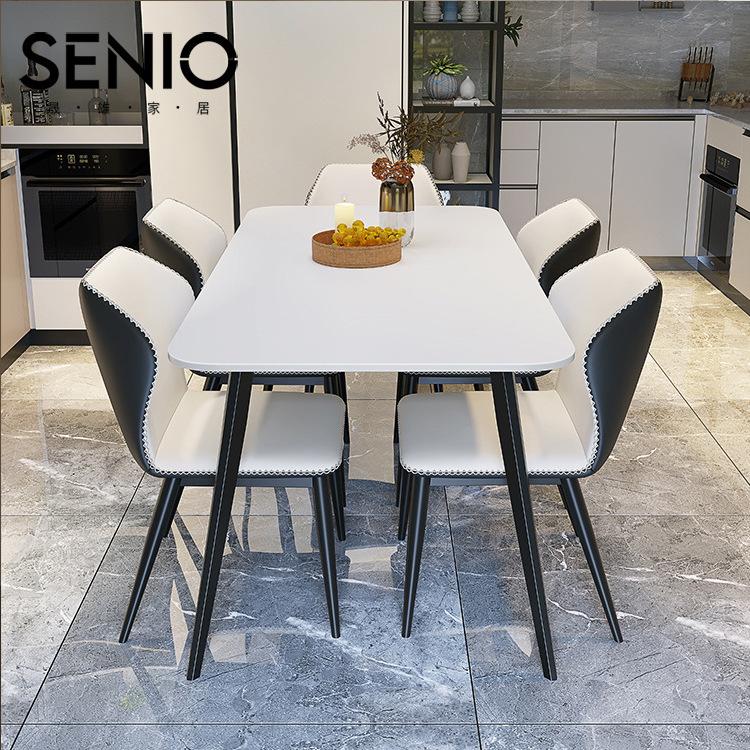 Meja Makan Sederhana Gaya Italia Kombinasi Kursi Meja Rumah Tangga Sederhana Modern Rumah Tangga Papan Batu Persegi Panjang Meja Ukuran Besar untuk Restoran