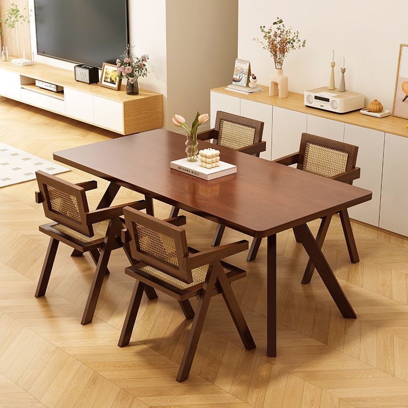 Meja Makan Kayu Solid Meja Makan Rumah Tangga Rotan Gaya Diam Persegi Panjang Meja Makan Sederhana Restoran Meja Makan Meja Makan Ukuran Kecil Gaya Kuno