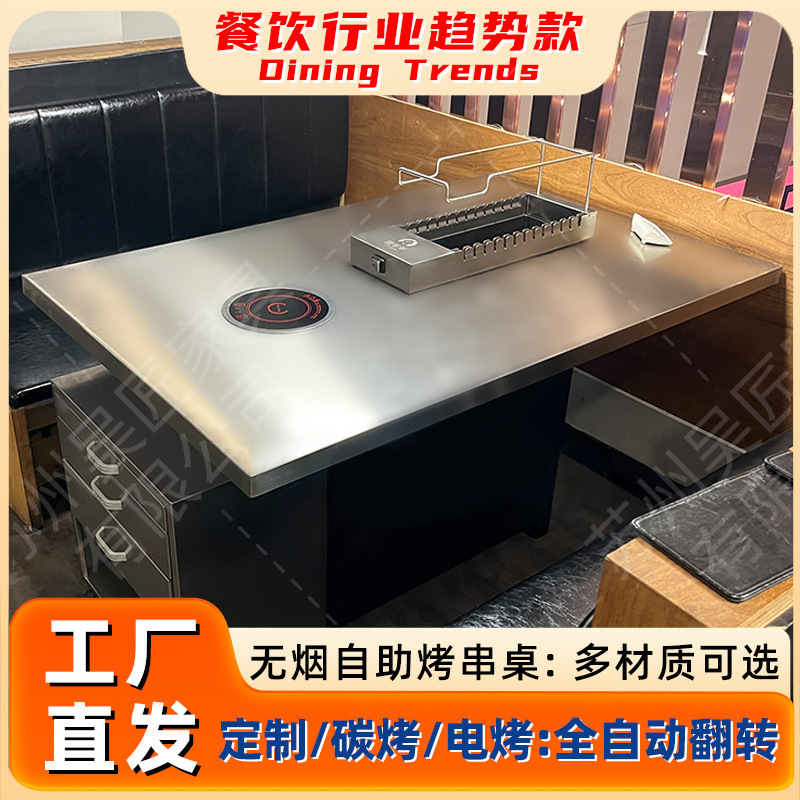 Tusukan bebas asap baja tahan karat, Meja panci panas otomatis flip memanggang dan mengukus terintegrasi asap atas dan bawah, toko barbekyu arang listrik komersial