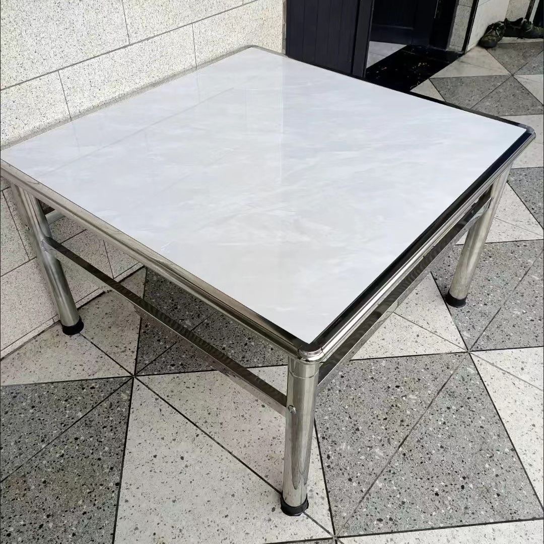 Rak Meja Persegi Stainless Steel Meja Halaman Meja Makan Rumah Tangga Pedesaan Ukuran Kecil Luar Ruangan Meja Makan Meja Makan Meja Kecil Rak Porselen