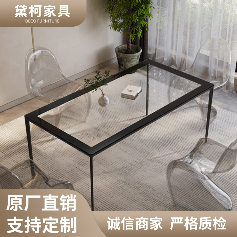 Meja Makan kaca persegi panjang, meja makan rumah tangga apartemen kecil desainer meja kaca antigores Italia minimalis ruang tamu meja makan
