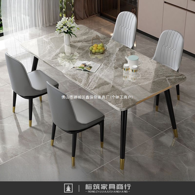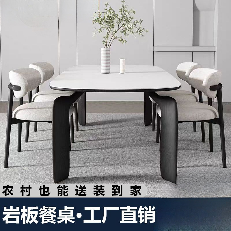 Meja Makan Meja Makan Papan Batu Kombinasi Kayu Solid Selebriti Internet Meja Makan Rumah Tangga Apartemen Kecil Modern Mewah Sederhana Persegi Panjang