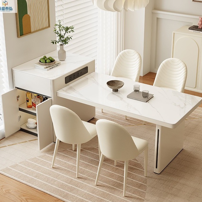 Meja Makan Pulau Teleskopik Gaya Krim Modis Dapur Meja Makan Batu Terintegrasi Rumah Tangga Multifungsi Unit Kecil