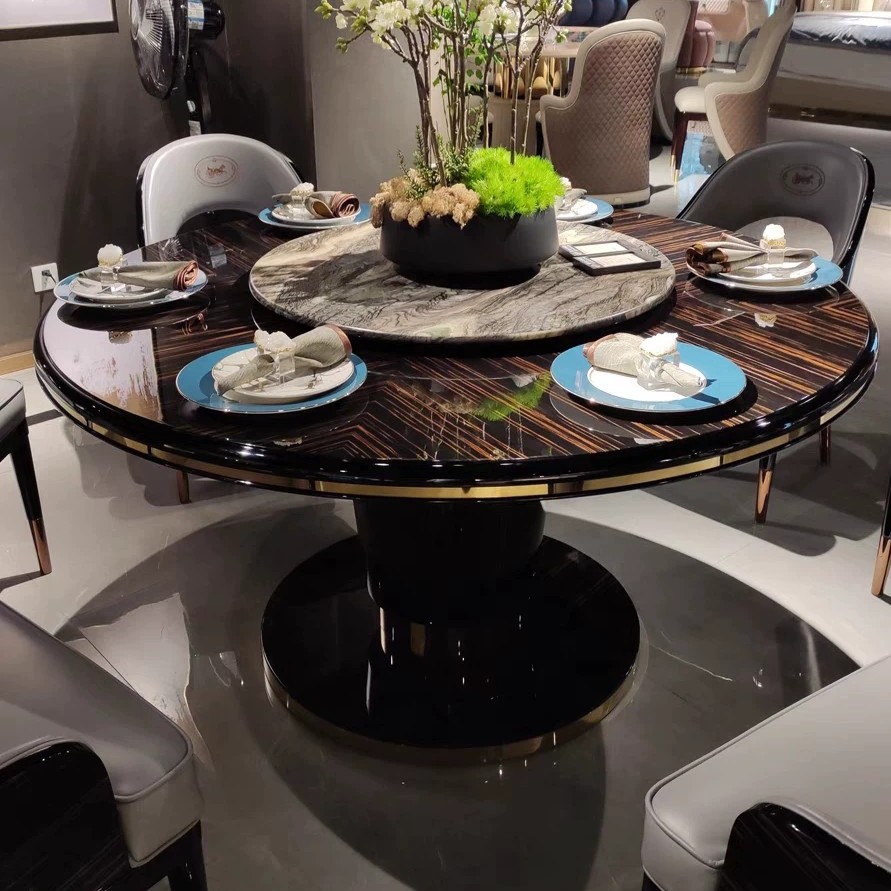 Meja Makan dan Kursi Kayu Solid Bentuk Bulat Kemewahan Gaya Italia Kombinasi dengan Meja Berputar Rumah Tangga Villa Modern Kelas Atas Bentley Unit Besar dan Kecil