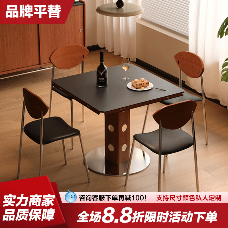 Bauhaus Gaya Kuno Papan Batu Kayu Solid Bisa Dilipat Rumah Tangga Tipe Kecil Gaya Reproduksi Persegi Meja dan Kursi Makan